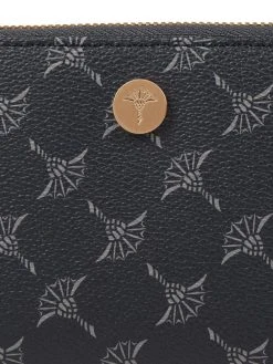 Das Portemonnaie von JOOP! zeigt sich mit Logo-Muster. Es kommt mit Druckknopf, Münzfach und zehn Kartenfächern. RFID-blocking verhindert ungewolltes Auslesen von Daten.